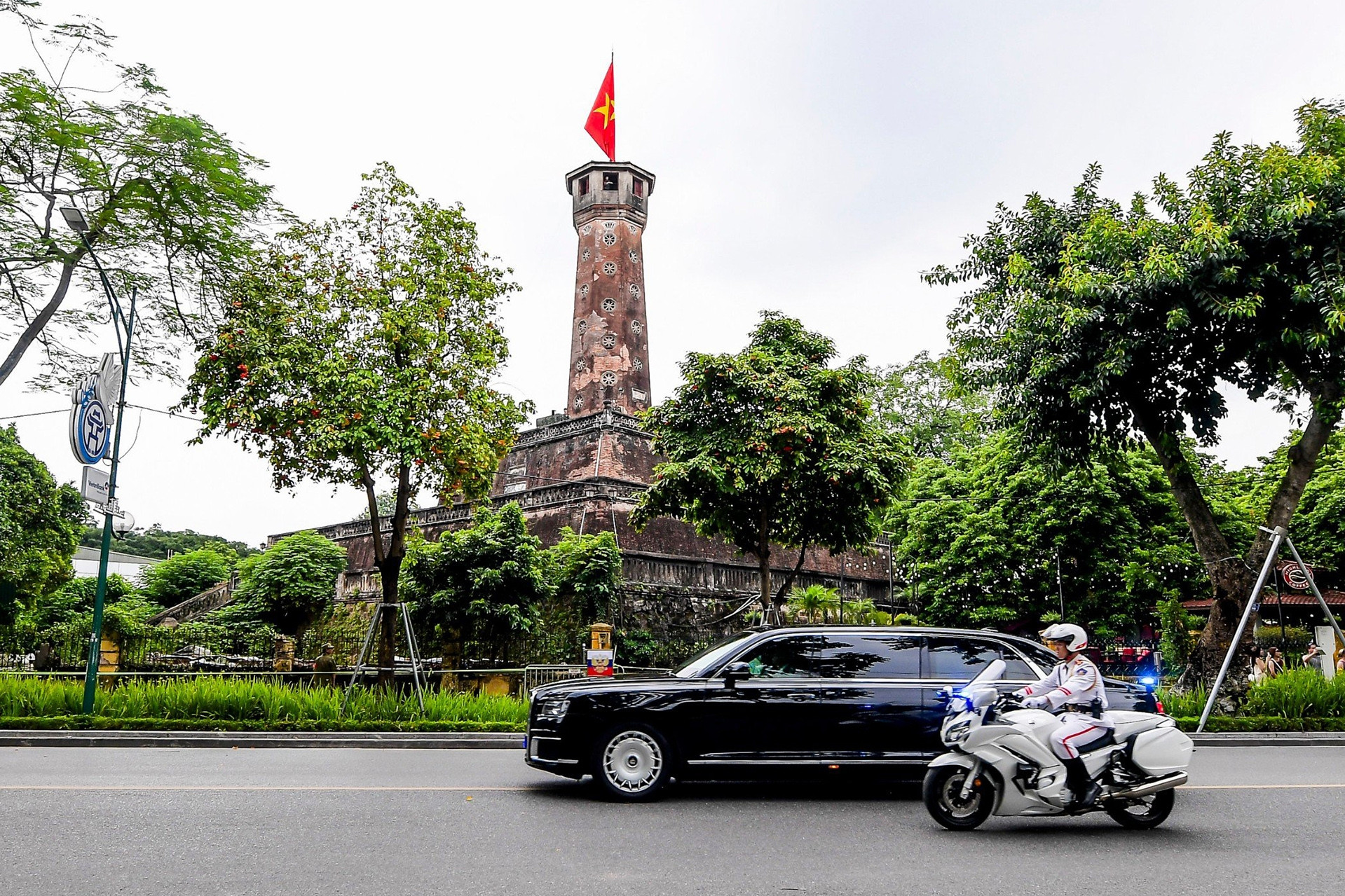 Đoàn xe chở Tổng thống Putin lăn bánh trên các tuyến phố trung tâm Hà Nội