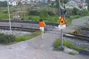 Clip cô gái bị tàu hỏa húc văng khi đi bộ qua đường ray