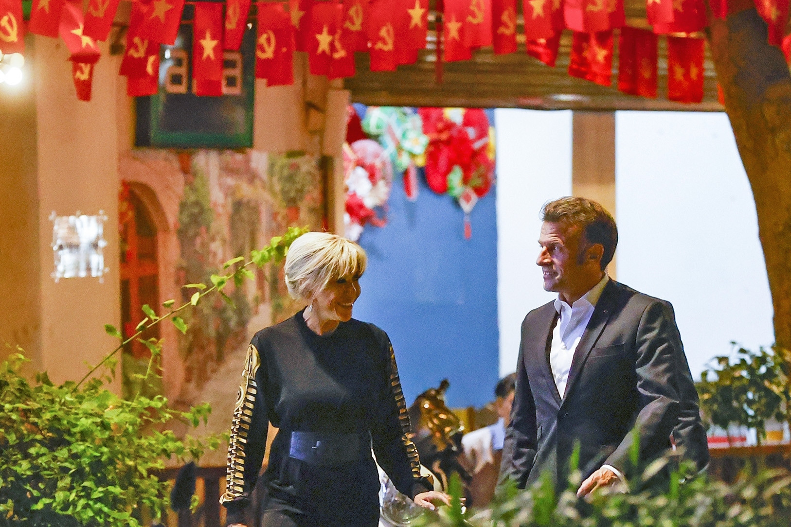 Sau khi kết thúc các hoạt động dày đặc trong ngày thứ hai thăm Việt Nam, Tổng thống Pháp Emmanuel Macron và Phu nhân Brigitte Macron tối qua có những phút thảnh thơi khi dạo phố Hà Nội, tham quan Nhà thờ Lớn.