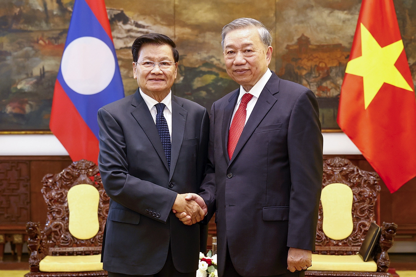 Tổng Bí thư Tô Lâm và Thủ tướng Phạm Minh Chính chiều nay đã tiếp Tổng Bí thư, Chủ tịch nước Lào Thongloun Sisoulith.