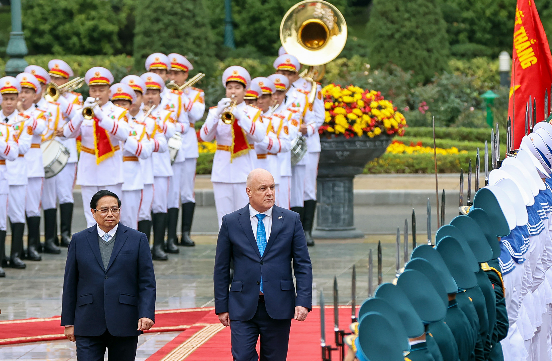 Chiều 26/2, tại Phủ Chủ tịch, Thủ tướng Phạm Minh Chính chủ trì lễ đón Thủ tướng New Zealand Christopher Luxon thăm chính thức Việt Nam.