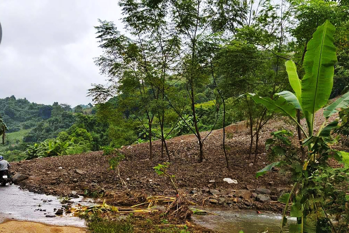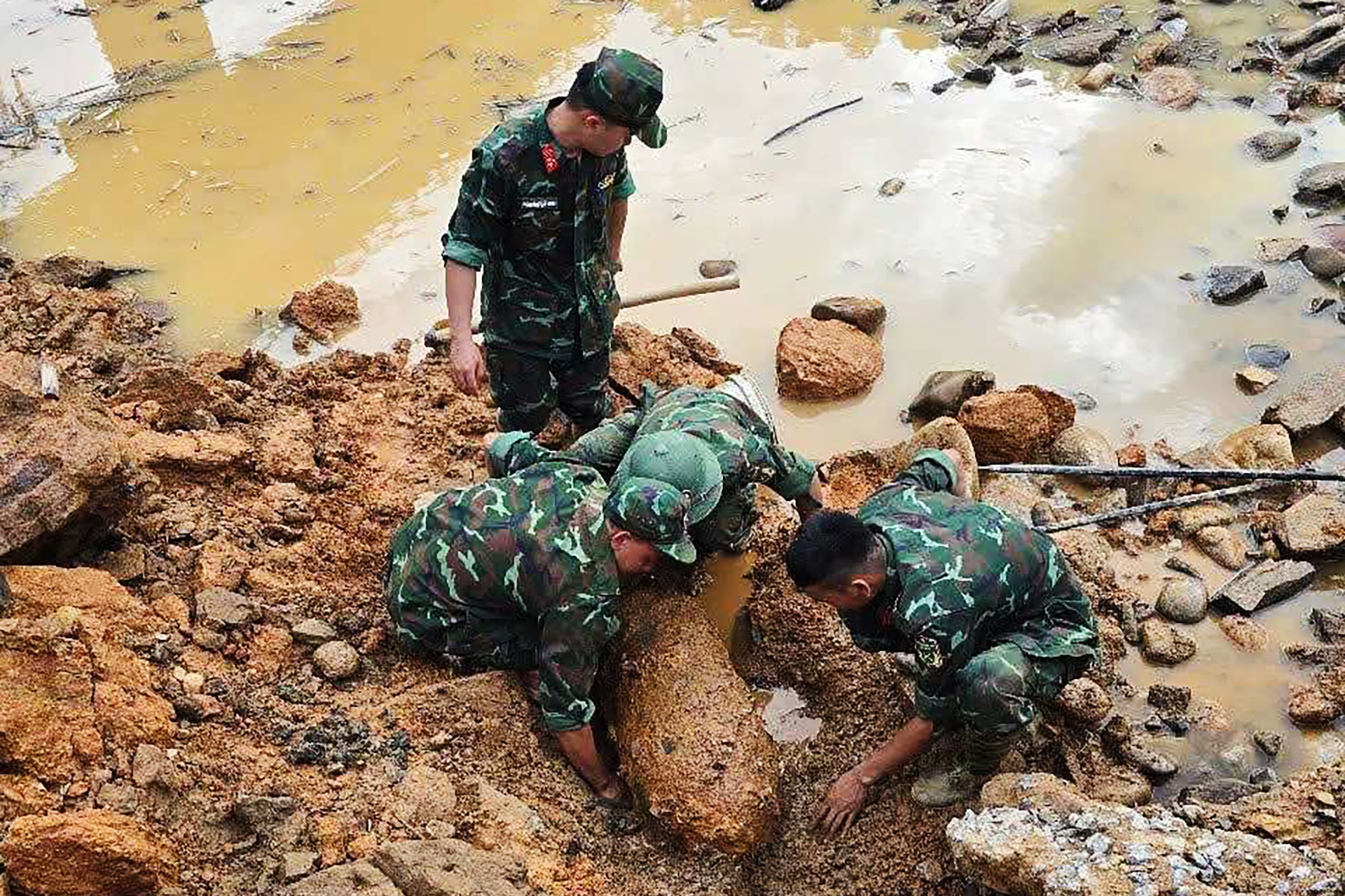Trong quá trình hỗ trợ người dân khắc phục hậu quả lũ quét, sạt lở đất, bộ đội phát hiện một vật thể hình quả bom tại khu vực thôn Pá Vạt 2, xã Mường Luân, tỉnh Điện Biên.