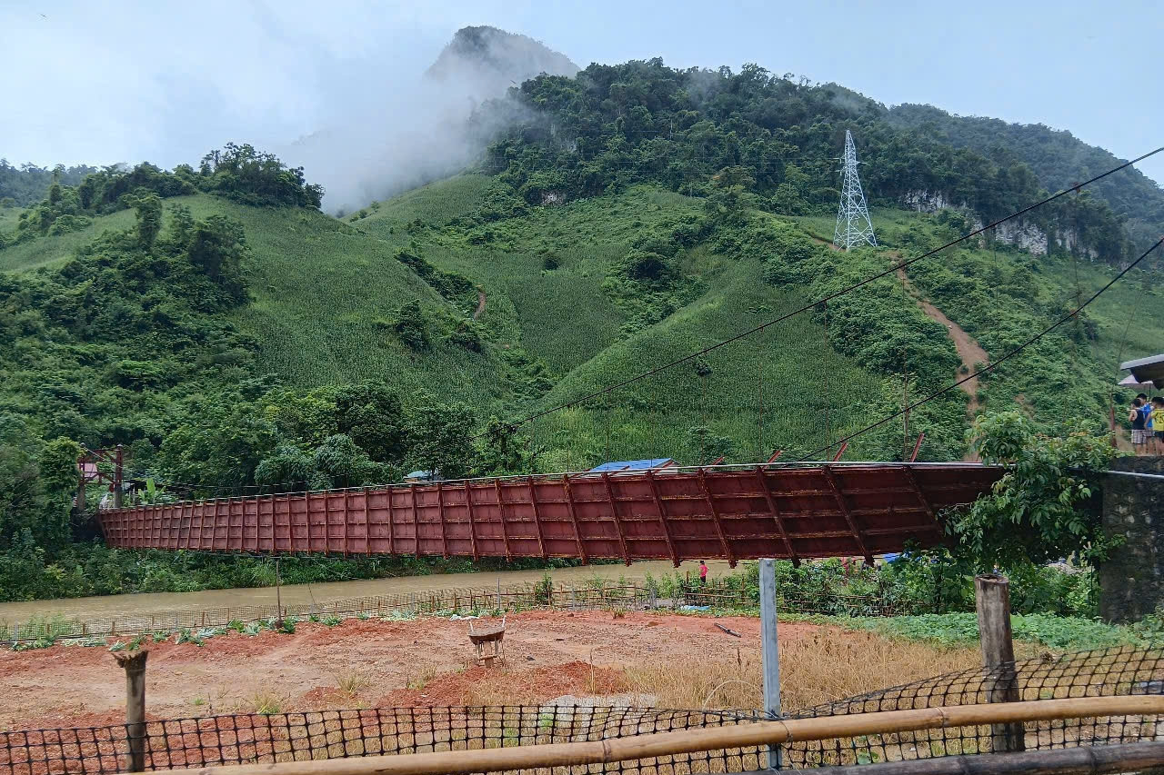 Sự cố đứt cáp cầu treo xảy ra tại bản Pa Xa, xã Thanh Yên, tỉnh Điện Biên khiến 1 ô tô chở 3 người rơi xuống sông.