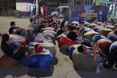 Tối 9/4, trong khuôn khổ Liên hoan phim quốc tế TP.HCM lần 1, hàng ngàn người dân TP.HCM tỏ ra thích thú khi được thưởng thức rạp chiếu phim ngoài trời tại công viên bờ sông Sài Gòn, TP.Thủ Đức.