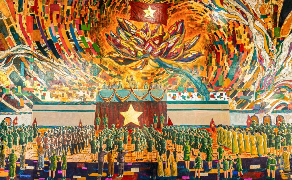 Tác phẩm sơn mài khổ lớn "Bác Hồ đọc Tuyên ngôn Độc lập" của họa sĩ Chu Nhật Quang đang trưng bày tại Bảo tàng Hồ Chí Minh, được Guinness công nhận là bức tranh sơn mài liền khối, không ghép lớn nhất thế giới.