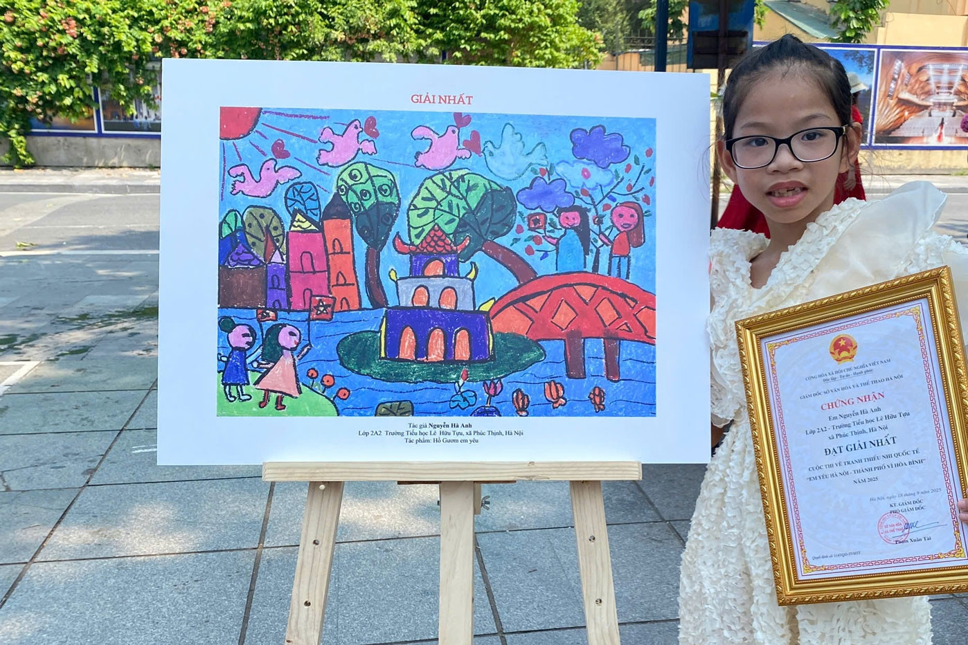 Vẽ quang cảnh tháp Rùa, cô bé 7 tuổi giành giải Nhất