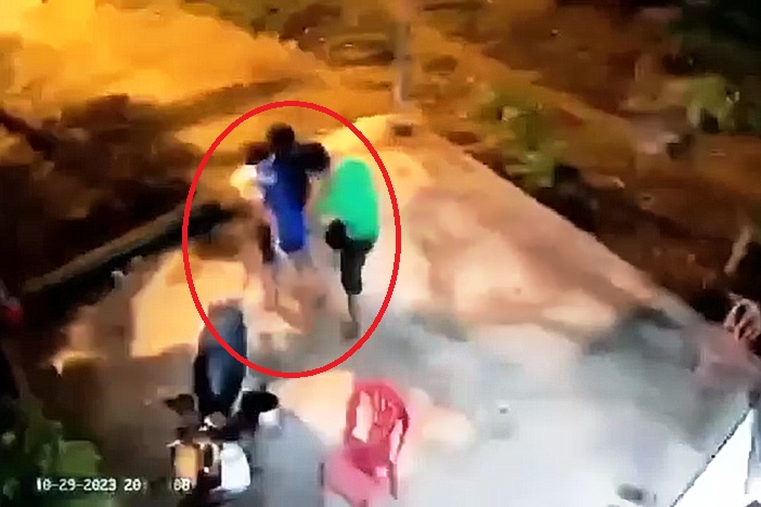 Bé gái khoảng 3 tuổi quấy khóc, người bố chạy từ trong nhà ra, đạp ngã bé xuống sân, túm chân bé kéo lê trên đất rồi lẳng ra xa khiến bé bị rạn xương vai.