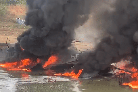 Nổ tàu chở dầu trên sông Bôi, 3 người bị thương