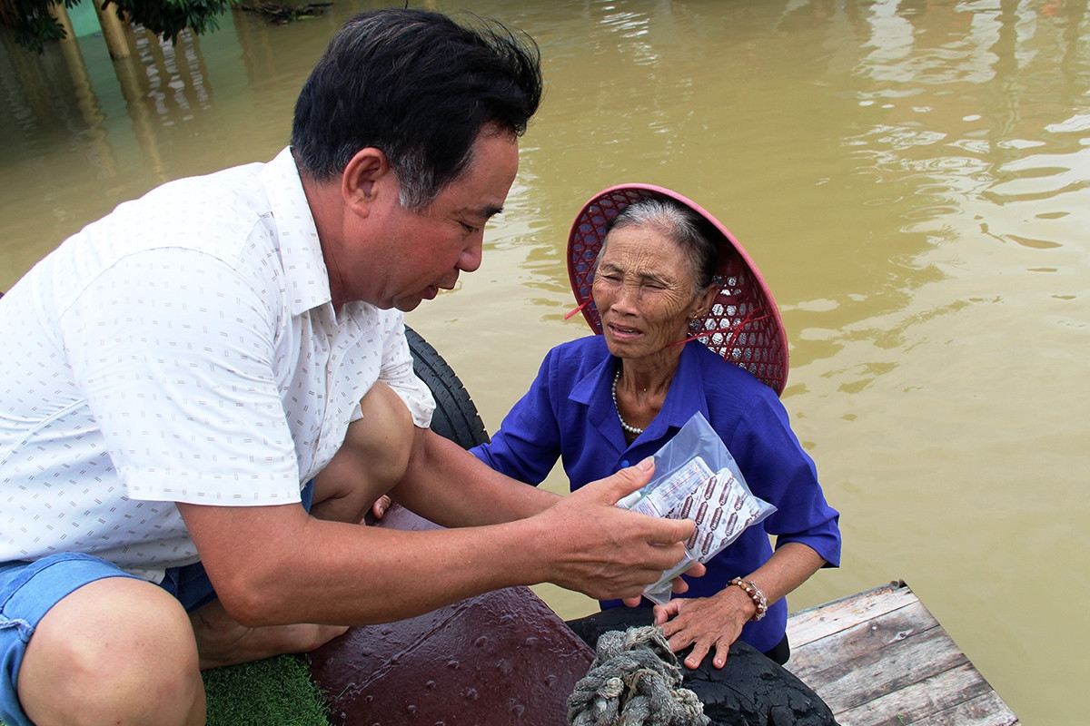 Mặc dù nước sông Hoàng Long bắt đầu rút nhưng hàng nghìn ngôi nhà ở Ninh Bình vẫn chìm sâu trong nước. Trẻ con được gửi ở nhờ để tiếp tục đi học, người lớn bám trụ trên những con thuyền nhỏ.