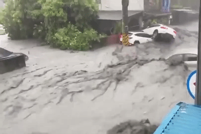 Khoảnh khắc sóng biển tràn vào sảnh khách sạn ở Hong Kong khi bão Ragasa áp sát