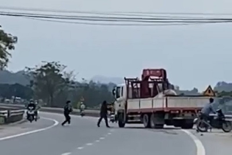 Xe tải đang lưu thông trên Quốc lộ 46 (tỉnh Nghệ An) thì bất ngờ bị một nhóm thanh niên đi xe máy chặn đầu, dùng hung khí đập phá cửa kính.