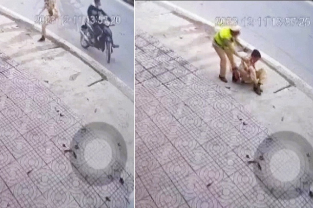 Thiếu tá CSGT ở Nghệ An bị thanh niên đi xe máy vượt chốt tông té ngã