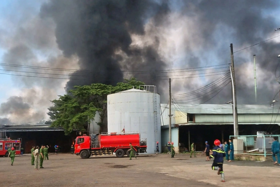 Nhóm công nhân đang bảo trì lò hơi trong công ty ở Bình Phước thì bất ngờ phát nổ, khói lửa bốc lên nghi ngút cao hàng trăm mét.