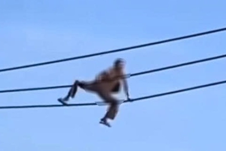 Người phụ nữ đi trên dây điện cao hơn 10m, phải cắt điện khẩn