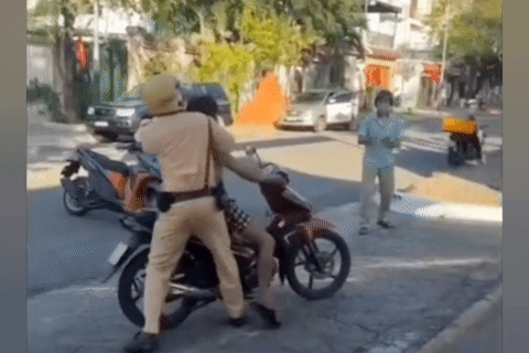 Clip cảnh sát khống chế người “múa dao” chạy xe trên đường