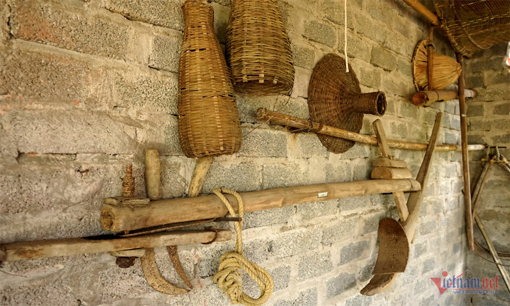 Không gian nông cụ như: cày, bừa, các loại cào, vồ đập đất, quạt lúa, chày giã dùng chân, các loại cối (cối xay lúa, cối giã gạo, cối xay gạo thành bột, cối xay ngô thành bột...).