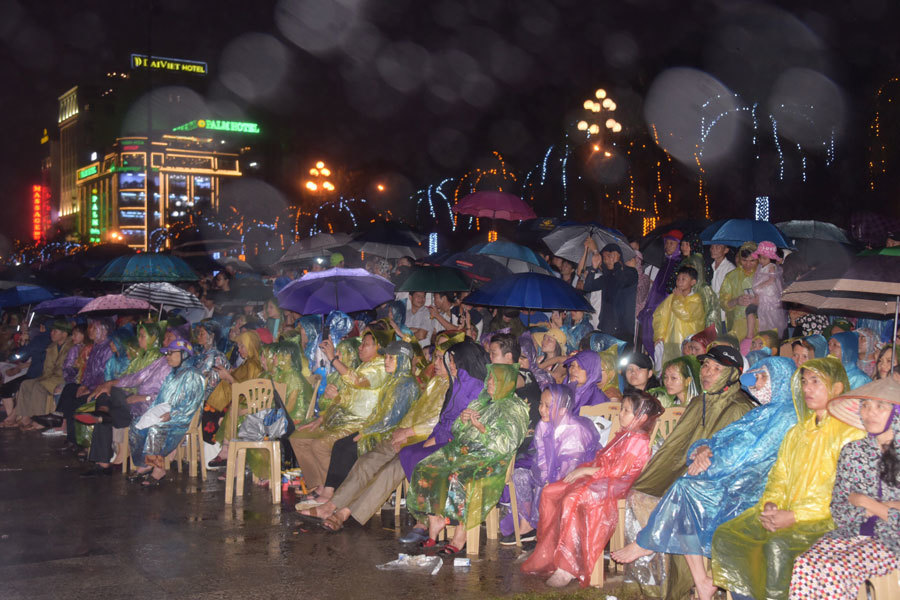 Đội mưa xem biểu diễn nghệ thuật tại Lễ kỷ niệm 990 năm Thanh Hóa