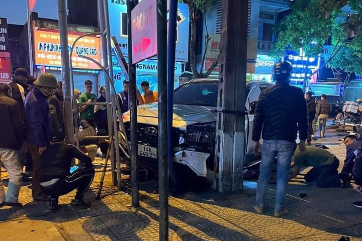 Theo đó, ô tô màu trắng hiệu Hyundai Santafe BKS 14A - 640.91 (chưa rõ danh tính tài xế) đi theo hướng từ chợ về cầu sông Chanh, bất ngờ mất lái đâm một loạt xe máy. Đến khi ô tô húc vào cột điện bên đường mới dừng lại.