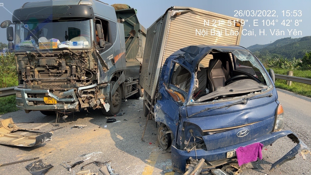 Ba ô tô con và một xe tải loại 2,5 tấn đang dừng chờ để đi qua công trường sửa chữa đường (đoạn xã Yên Hợp, huyện Văn Yên, tỉnh Yên Bái) trên cao tốc Nội Bài – Lào Cai thì bất ngờ bị xe tải loại trên 10 tấn đâm mạnh từ phía sau.