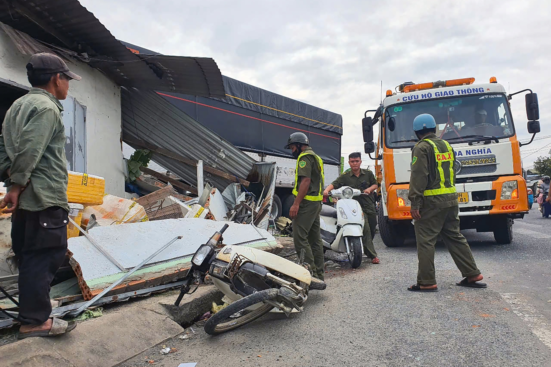 Công an có mặt khám nghiệm hiện trường, điều tra nguyên nhân tai nạn.