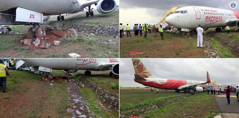 Một máy bay của hãng Air India Express vừa trượt khỏi đường băng ở sân bay quốc tế Mangalore, trong khi vụ việc tương tự xảy ra với một chuyến bay SpiceJet ở Surat ít giờ sau đó.