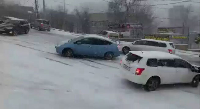 Hơn 250 tai nạn xe đã xảy ra trên các con đường bị băng phủ kín ở Vladivostok, Nga, chưa đầy 24h sau đợt tuyết rơi dày đầu tiên.