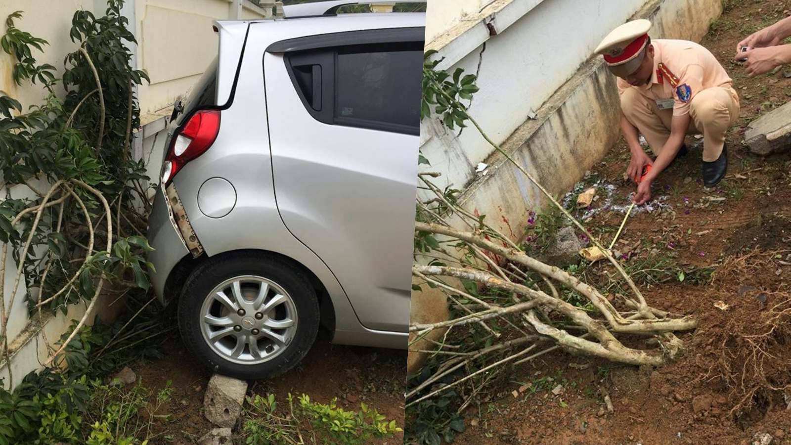 Trên đường đi học về, M. bất ngờ bị rơi xuống cống sâu gần 2 mét trước cổng trường.