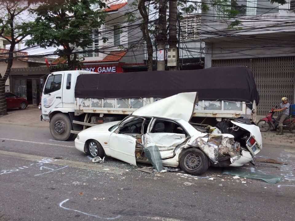 Xe biển xanh bị kẹp bẹp dúm trên quốc lộ 5