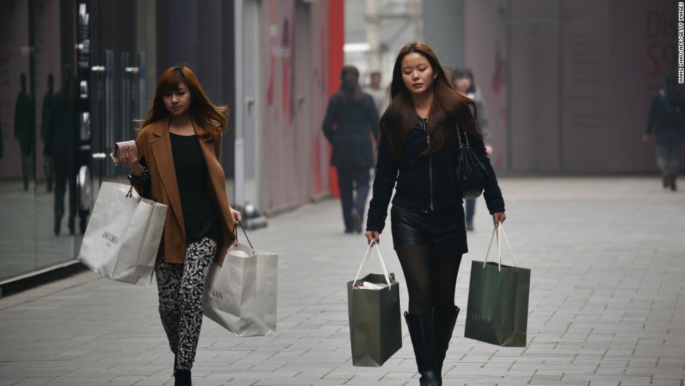 | Ảnh minh họa: Hai phụ nữ đang xách túi đồ mua sắm trên đường phố Bắc Kinh, Trung Quốc. |