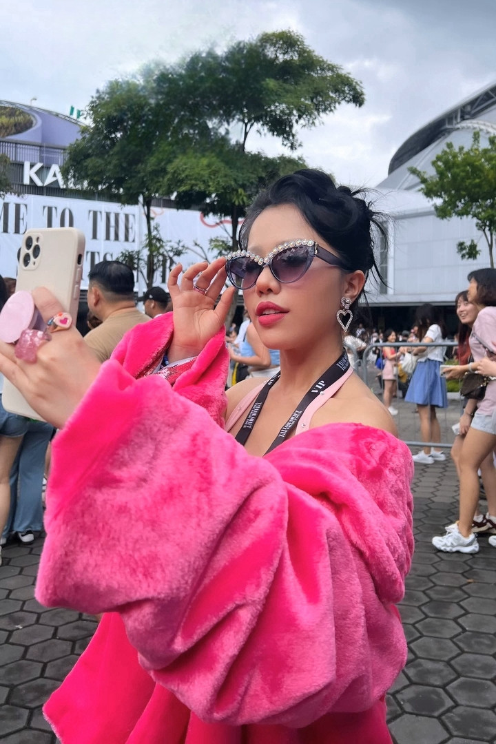 Ca sĩ Min gây cười khi in lời tất cả ca khúc Taylor Swift trình diễn trong đêm nhạc để học thuộc. "Đi xem concert mà giống đi thi quá ta", cô tự bình luận.
