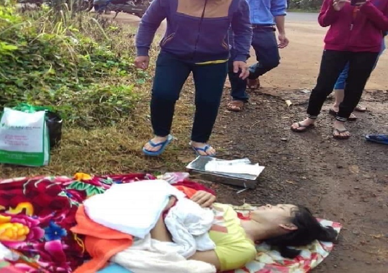 Đáng nói, lúc này ông N. đã dừng xe yêu cầu hai vợ chồng xuống khỏi xe, sau đó lấy một tấm ni-lon trải bên lề đường cho chị Yến nằm lên rồi bỏ đi.