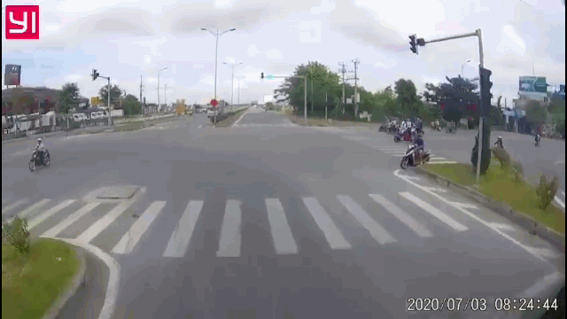 Vụ tai nạn trên xảy ra sáng ngày 3/7 tại khu vực ngã tư Thiên Trường Plaza (phường Trần Lãm, TP Thái Bình) và được camera hành trình của xe container ghi lại.