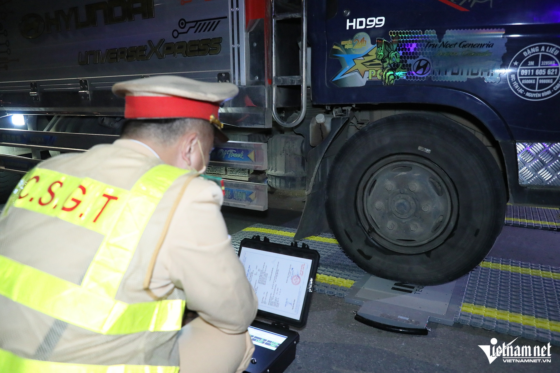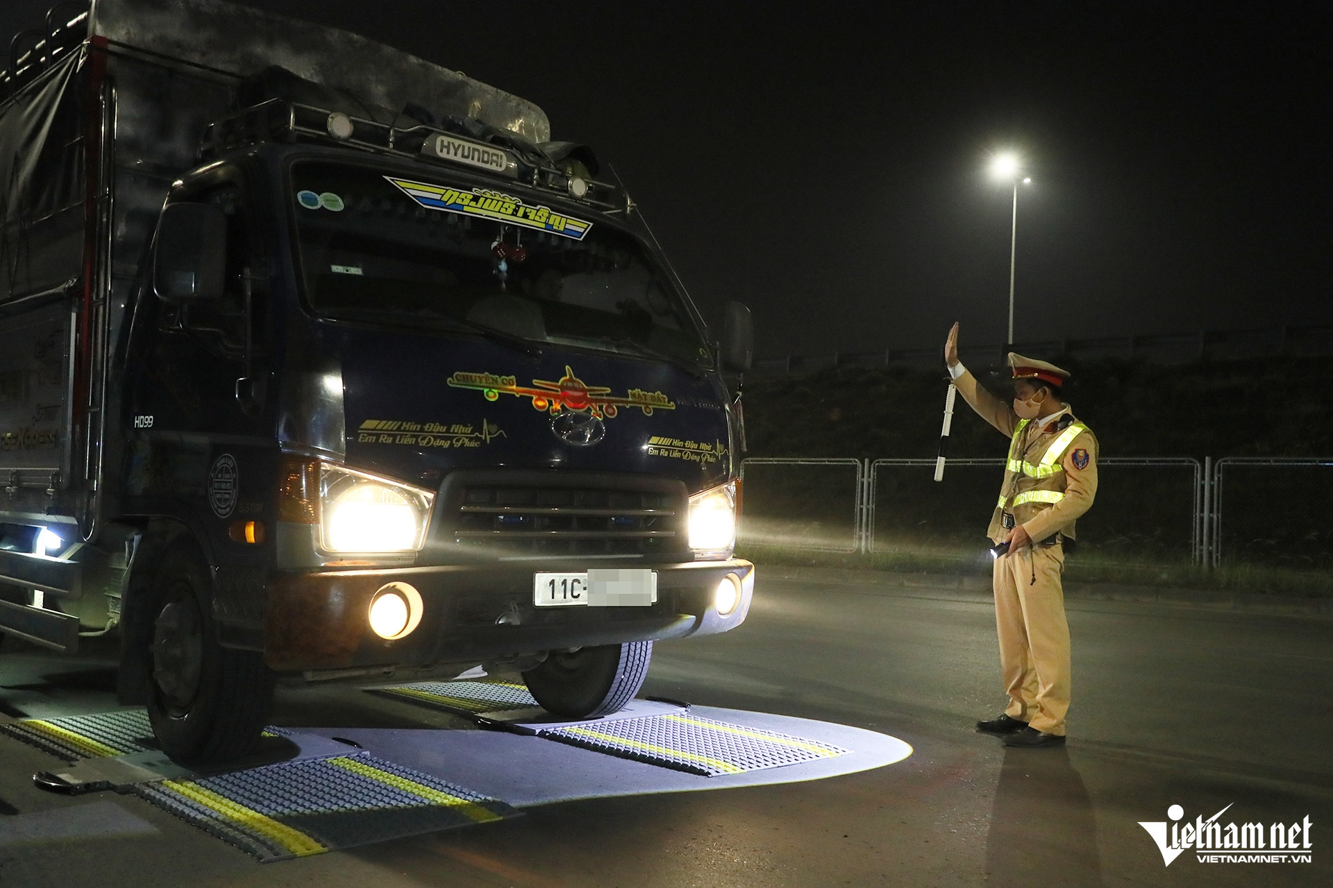 Đêm 17/12, rạng sáng 18/12, Tổ công tác của Đội CSGT đường bộ số 14 (Phòng CSGT Công an TP Hà Nội) lập chốt tại khu vực ngã tư Lĩnh Nam - Đỗ Mười (quận Hoàng Mai, Hà Nội) để kiểm tra vi phạm về chở hàng quá trọng tải, quá khổ...