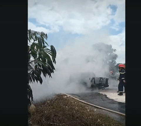 Sau khi tông em gái của vợ, ông Đ. vào xe khóa trái cửa rồi châm lửa đốt hai can xăng, phát ra hai tiếng nổ rồi xe bốc cháy ngùn ngụt. Ngọn lửa nhanh chóng bao trùm, thiêu rụi ô tô, tài xế tử vong bên trong.