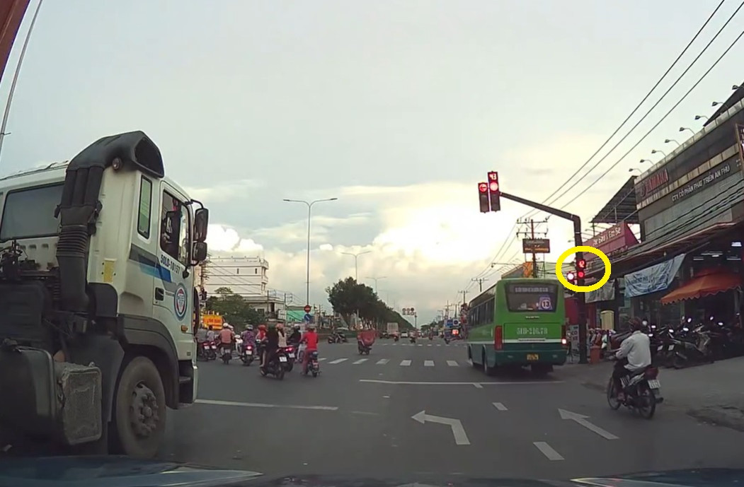 Tuy nhiên, tài xế lái xe buýt số 13 (Bến xe buýt Sài Gòn - Bến xe Củ Chi) ngang nhiên cho phương tiện vượt qua giao lộ đang đèn đỏ. Toàn bộ sự việc được camera hành trình phương tiện phía sau ghi lại, đăng tải lên mạng xã hội.