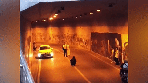 Theo tài xế Vũ Ngọc Cường, khi di chuyển qua con đường trên anh cũng bất ngờ vì giữa đường to rộng lại xuất hiện một rạp đám cưới chiếm đến 3/4 bề ngang. Phải lái hết sức nắn nót, chiếc xe con của anh Cường mới di chuyển qua bên hông rạp cưới.