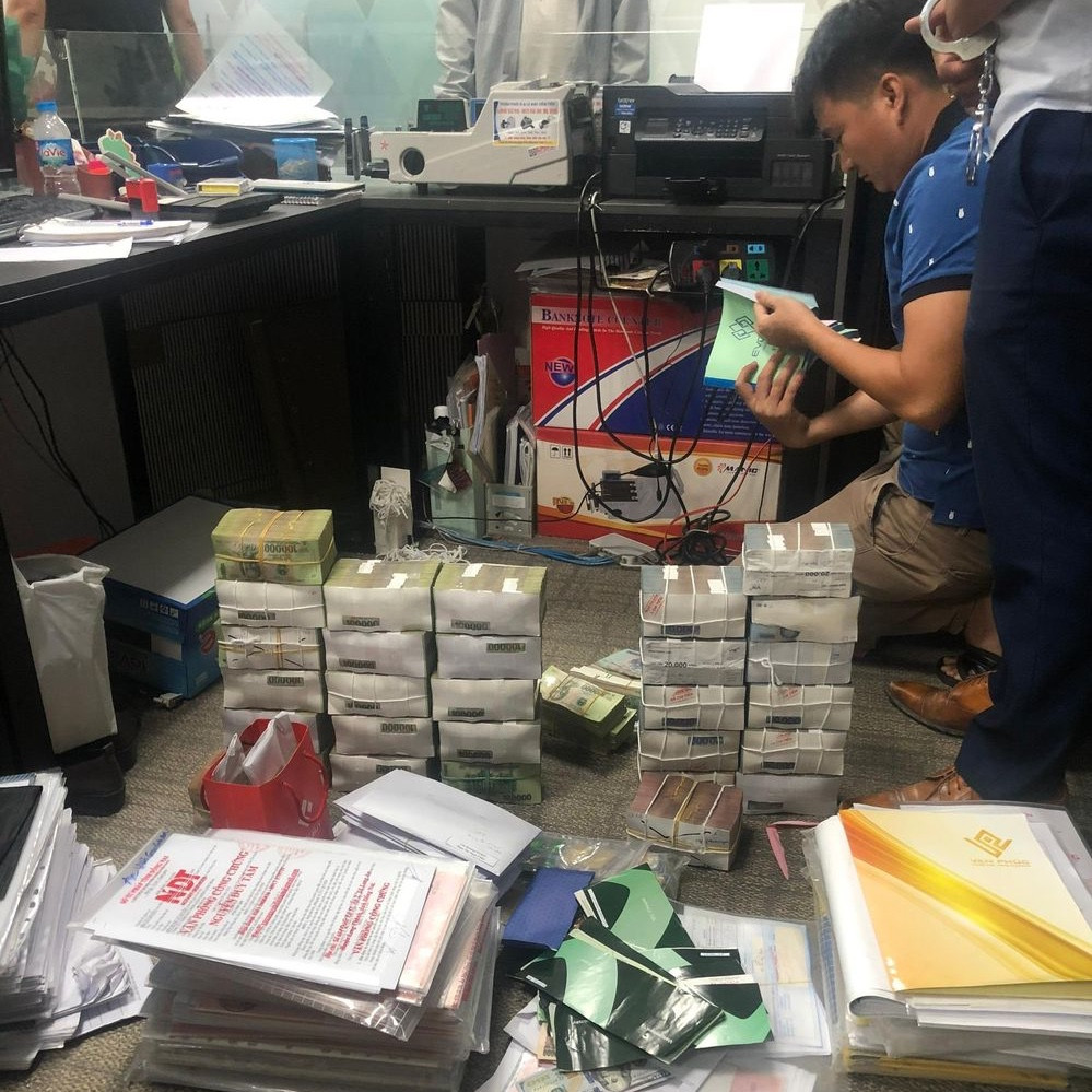 Cùng thời điểm, lực lượng công an cũng khám xét trụ sở Công ty Lộc Phúc thu giữ 50 thùng tài liệu, nhiều máy tính, thiết bị điện tử, hơn 2,4 tỷ đồng, 18 nghìn Yên Nhật; 3,5 nghìn USD; 24,3 lượng vàng; 7 ô tô,… để phục vụ công tác điều tra.