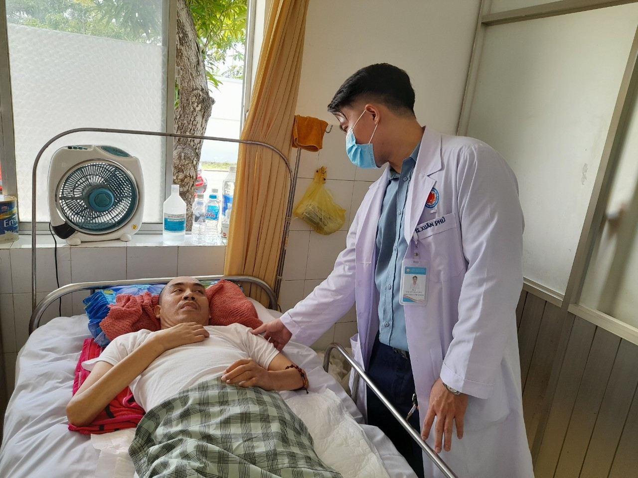 Thời điểm mới tiếp nhận chăm sóc, anh Duy đã bị loét cùng cụt do nằm một chỗ quá lâu. Dù chị Huyền cố gắng cẩn thận, nhưng do anh có bệnh nền tiểu đường, vết thương mãi chẳng lành, thậm chí ngày càng lan rộng. Chị cũng từng đưa anh đi điều trị ở bệnh viện địa phương nhưng không có hiệu quả.