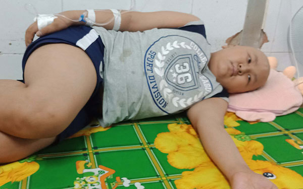 Khối u lớn trên đầu làm khuôn mặt cậu bé đáng thương trở nên biến dạng. Không những vậy, em còn phải chịu đau đớn dày vò, sức khỏe ngày một héo mòn.