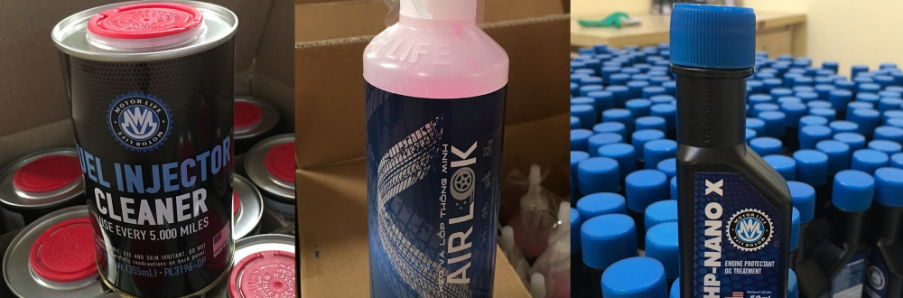 Bao bì sản phẩm phụ gia chăm sóc ô tô, xe máy của Công ty TNHH MOTOR LIFE có ghi xuất xứ từ Mỹ