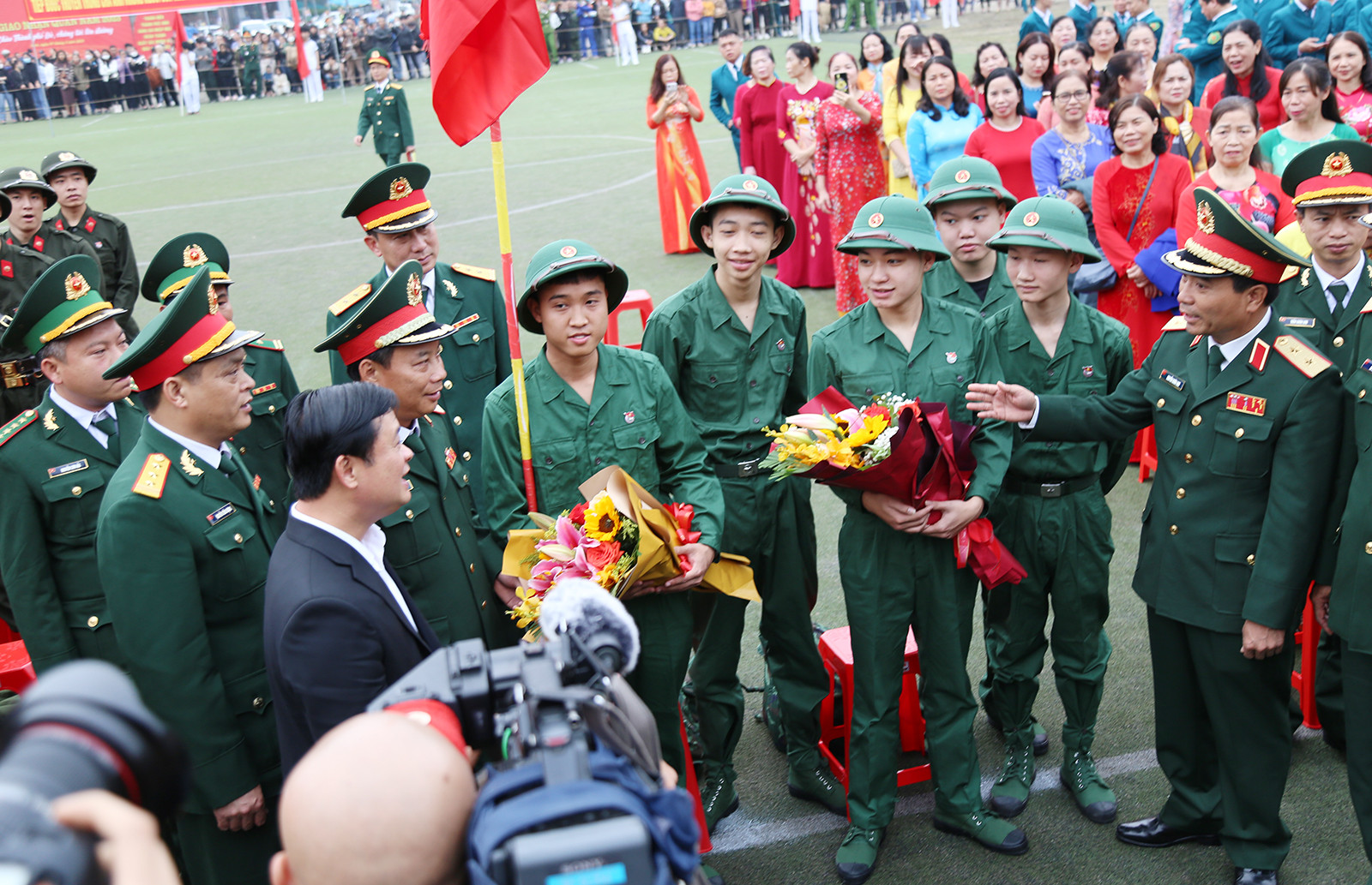 Phát biểu tại lễ giao nhận quân, ông Trần Ngọc Tú - Chủ tịch UBND TP. Vinh cho biết, các công dân lên đường nhập ngũ sẽ phát huy truyền thống của quê hương, truyền thống vẻ vang của các thế hệ cha anh,... nỗ lực phấn đấu về mọi mặt, học tập, rèn luyện để hoàn thành xuất sắc mọi nhiệm vụ được giao.