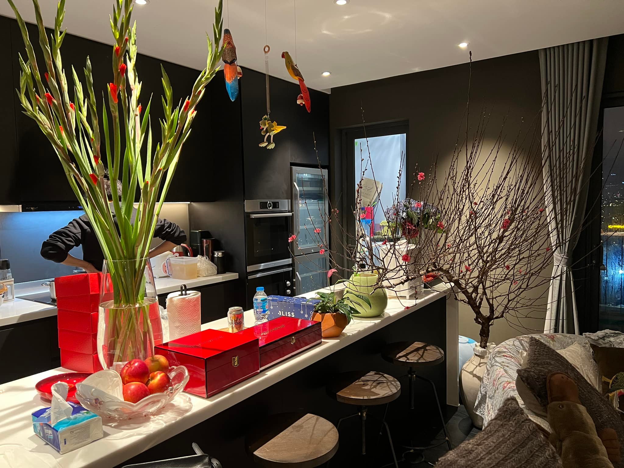 Sao Việt hôm nay 1/2: Ca sĩ Tân Nhàn khoe tổ ấm tràn ngập không khí Tết bên ông xã. "Mai, đào khoe sắc thắm/ Lộc biếc cành xuân sang/ Bé mừng vui hỏi nhỏ/ Phải chăng Tết đã về?", nữ ca sĩ viết.