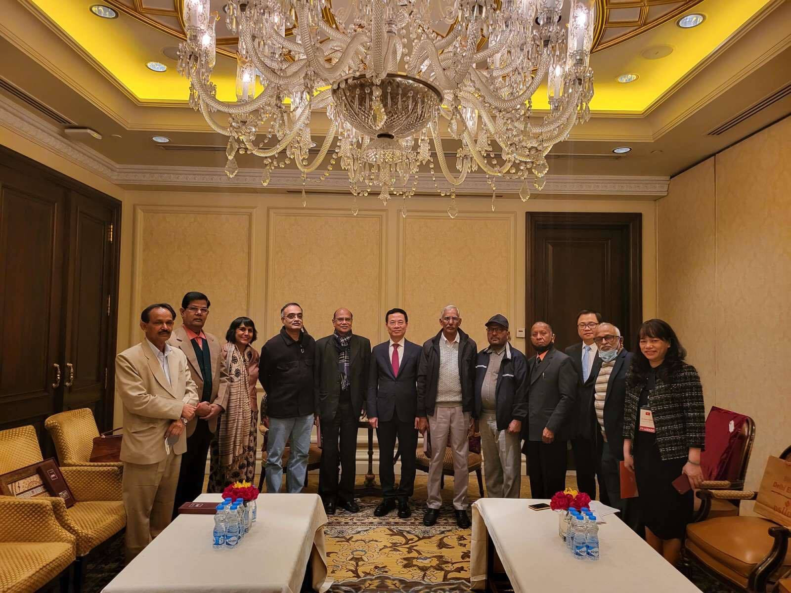 | Chủ tịch Hội Hữu nghị Việt Nam - Ấn Độ Nguyễn Mạnh Hùng tiếp lãnh đạo Tổ chức Hòa Bình và Đoàn kết Toàn Ấn Độ |