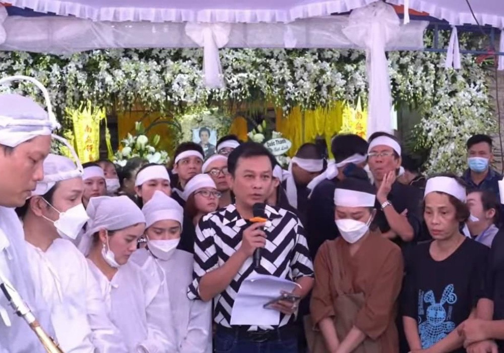 Trước giây phút làm lễ di quan, NSƯT Hữu Quốc thay mặt gia quyến đọc điếu văn do nhà văn, đạo diễn Nguyễn Thị Minh Ngọc chấp bút.