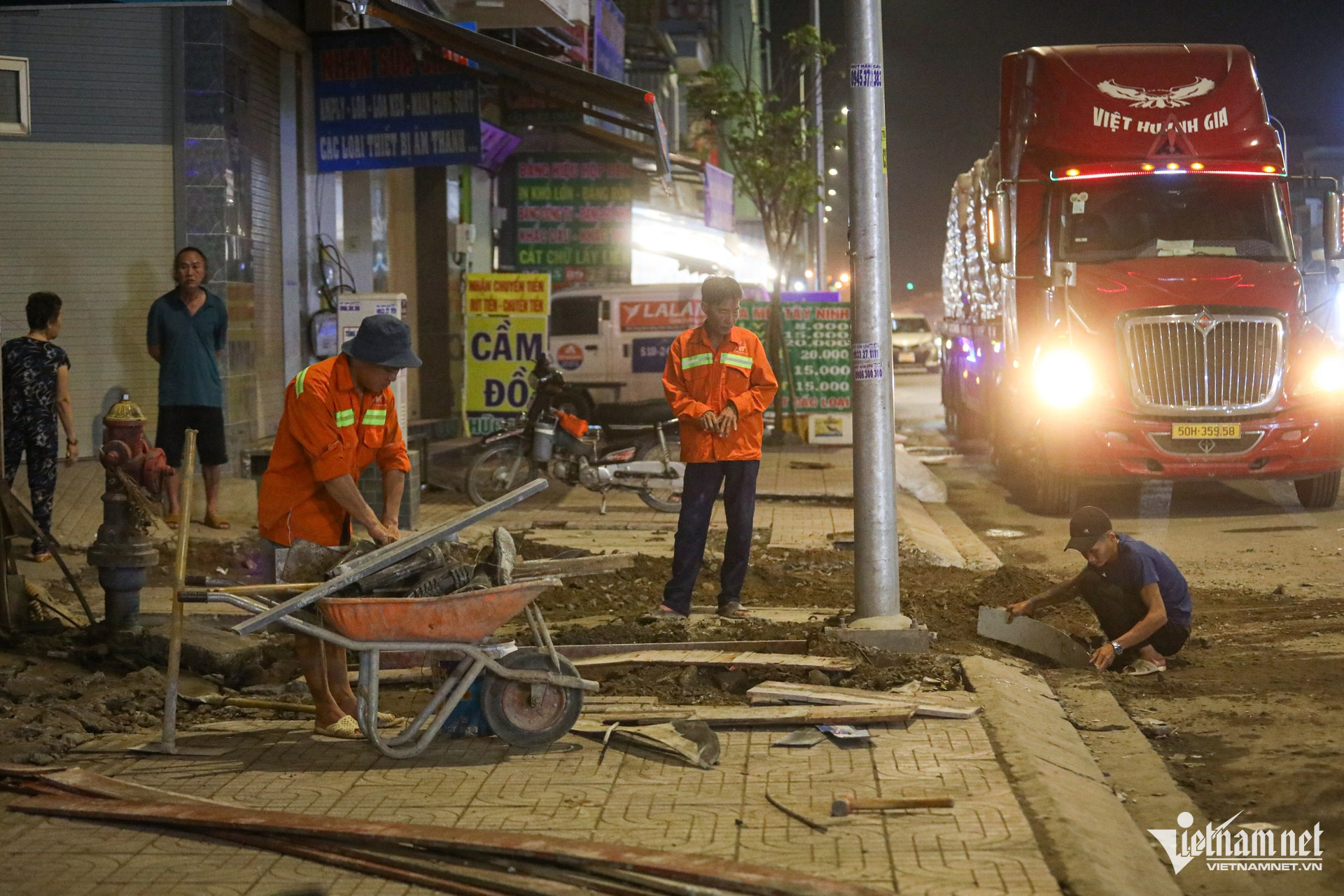 Để đẩy nhanh tiến độ, các công nhân cùng máy móc được tăng cường hoạt động vào ban đêm.