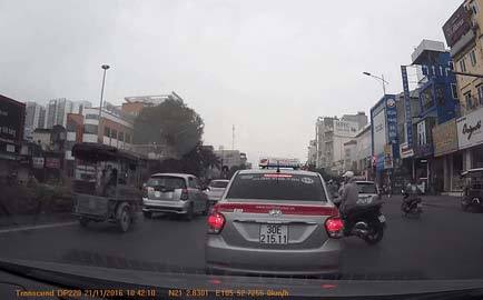 Tuy không xảy ra va chạm nhưng chính pha tạt đầu ô tô, lách làn của người phụ nữ đi SH chính là nguồn cơn khiến 1 người bị ngã ra đường.