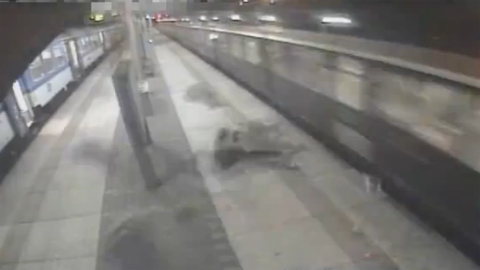 Thời khắc kinh hoàng của người đạp xe đâm tàu cao tốc