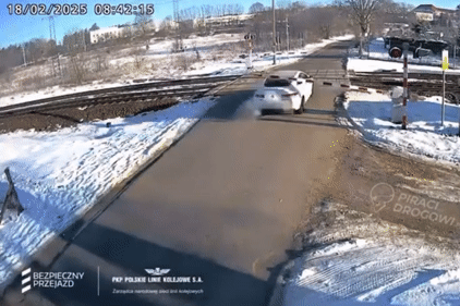 Ba Lan – Một người đàn ông lái xe Renault đã lao thẳng vào đoàn tàu tốc độ cao đang chạy trên đường sắt. Chiếc xe ô tô bị đâm nát nhưng tài xế vẫn sống sót thần kỳ.