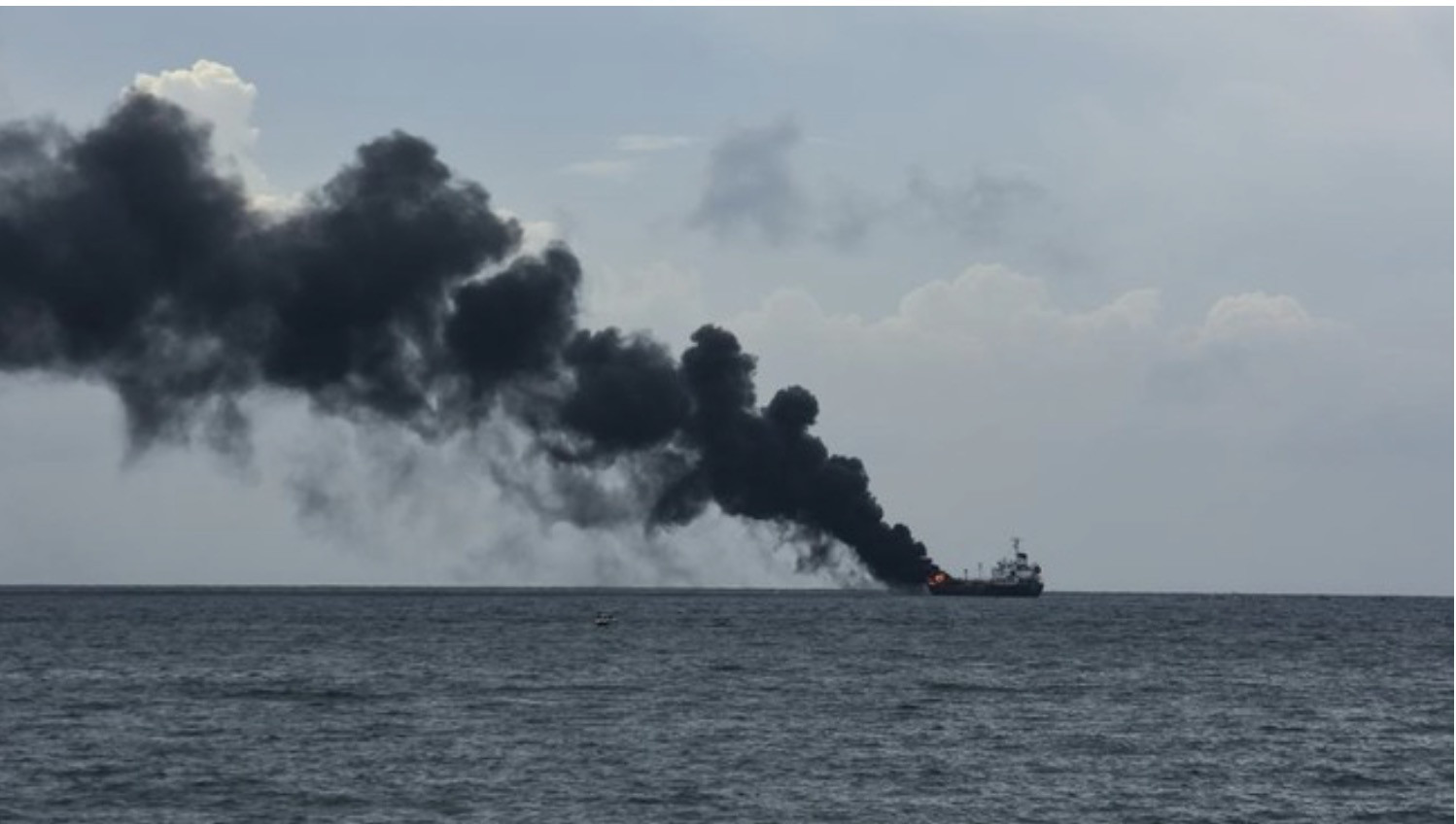 Một tàu kéo của hải quân Indonesia đang có mặt tại khu vực đã mau chóng tới hỗ trợ sơ tán thủy thủ. Hình ảnh qua video cho thấy, thủy thủ đoàn của tàu Hading Bay tập hợp ở phần phía trước con tàu trong khi khói cuồn cuộn bốc lên từ phía sau tàu.