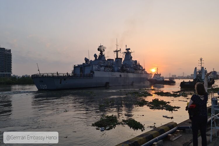 Hôm nay, khinh hạm "Bayern" đã cập cảng Nhà Rồng tại TP.HCM. Chào mừng tàu đến thăm Việt Nam có Đại sứ CHLB Đức TS. Guido Hildner.